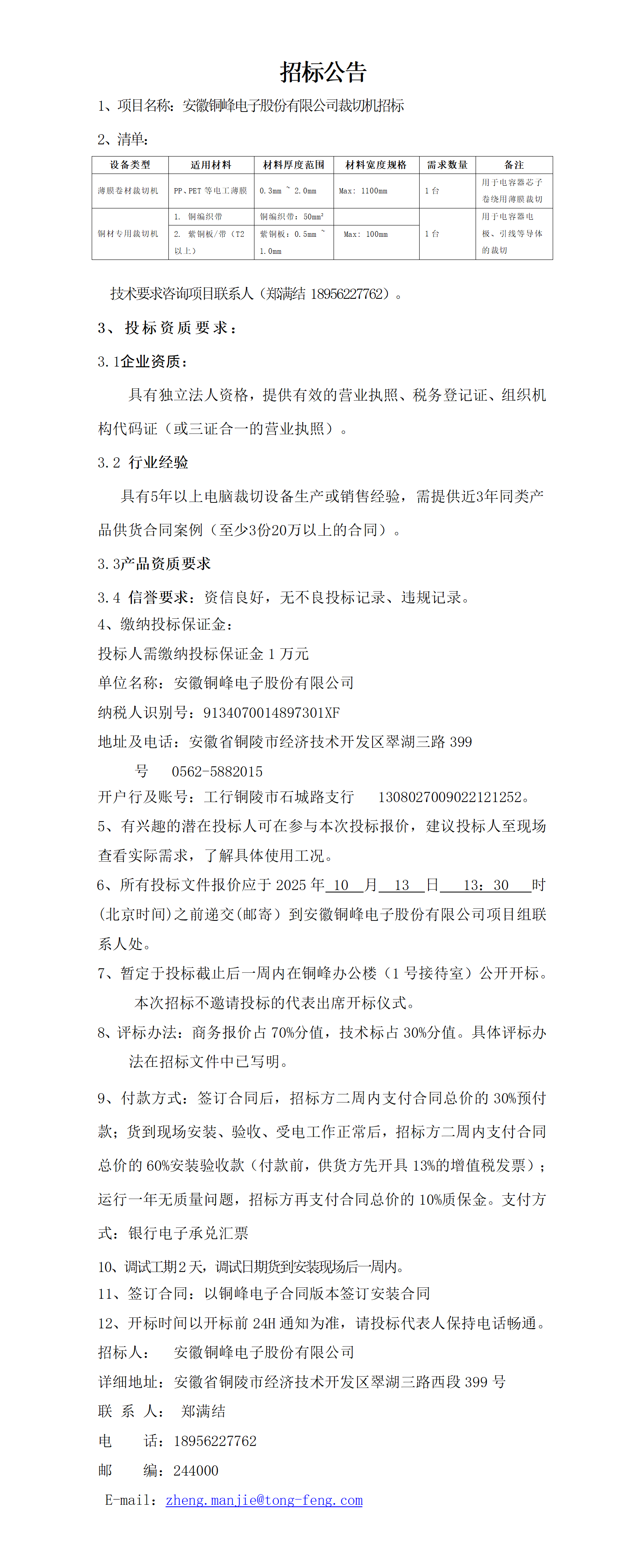 安徽铜峰电子股份有限公司 (安徽铜峰电子股份有限公司景观绿化工程 招标公告)_01