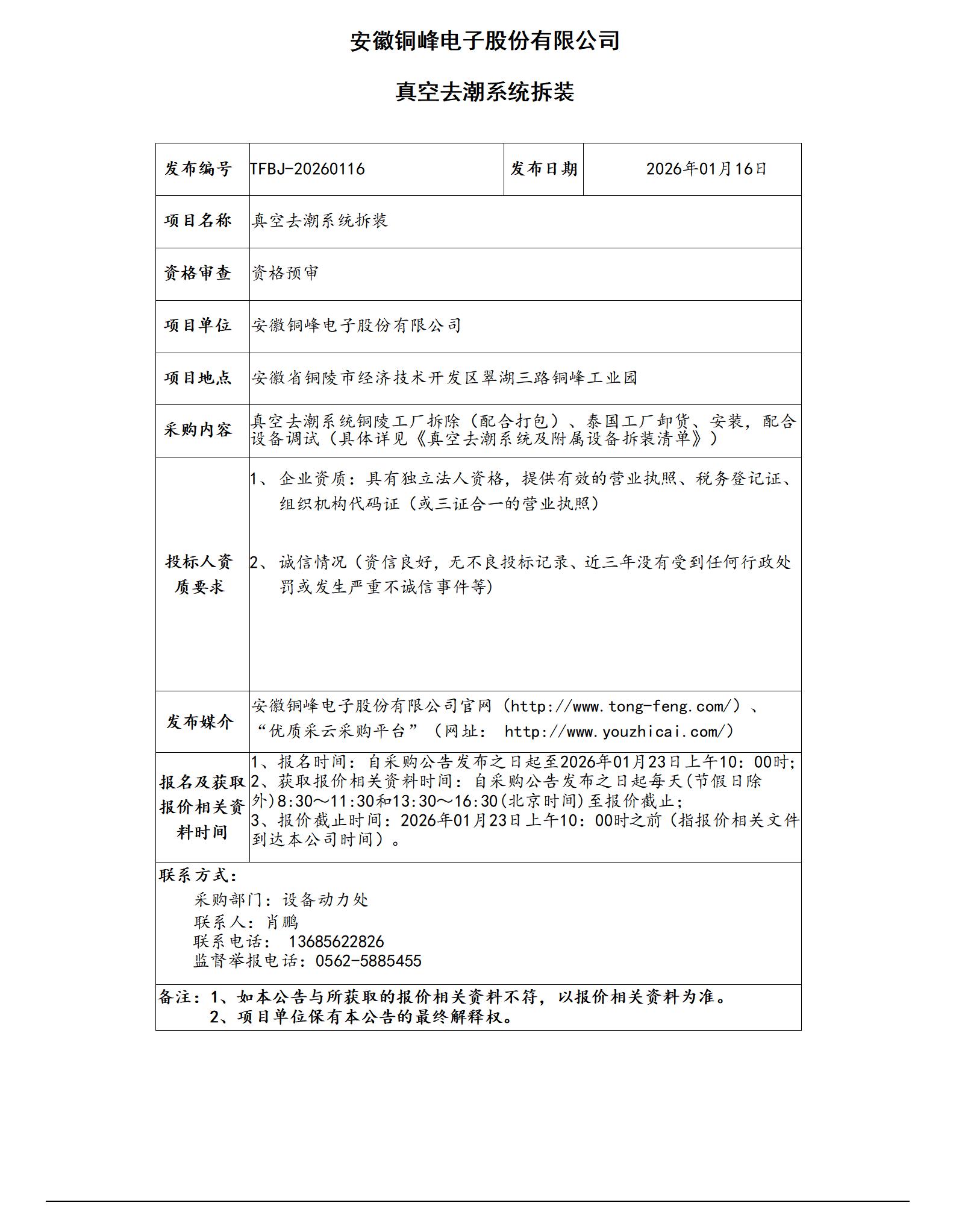 安徽铜峰电子股份有限公司 (铜峰公司2026年零星建筑维修工程 招标公告)_01
