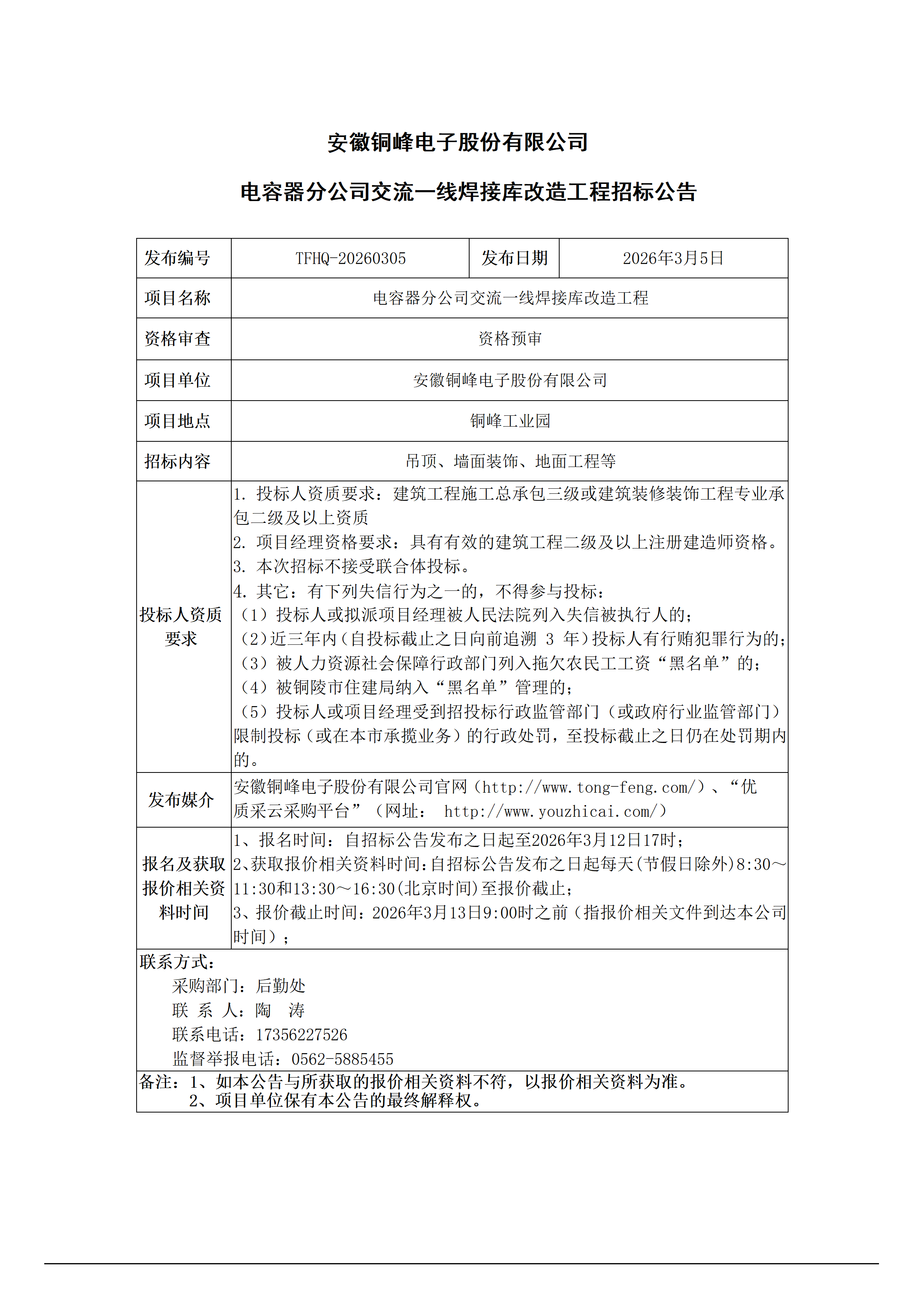 安徽铜峰电子股份有限公司 (电容器分公司交流一线焊接库改造工程 招标公告)_01