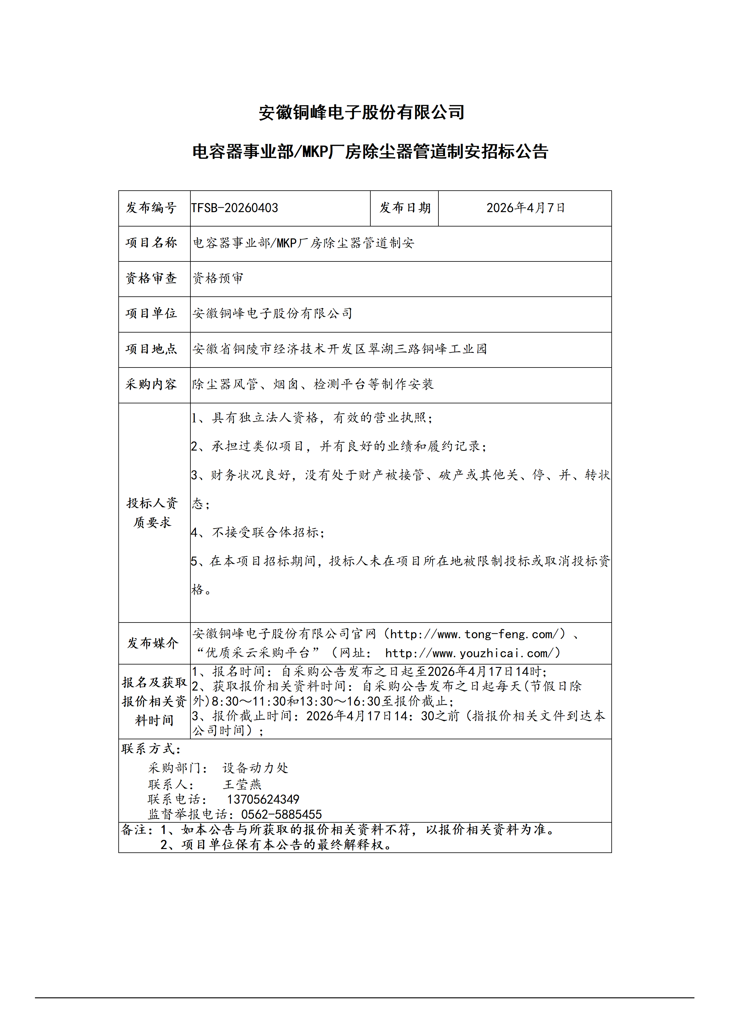 01-安徽铜峰电子股份有限公司 (铜爱厂房西侧道路改造-- 招标公告)_01