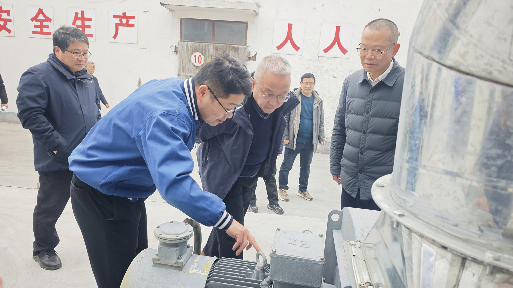 谢永明一行来到电容器分公司交流一线喷金工序外部专用收尘设施,认真了解装置运行和安全报警系统、应急救援设施、静电防护等安全设施运行维护情况,并听取公司领导和有关负责人关于安全环保措施落实、隐患排查治理等情况的汇报。